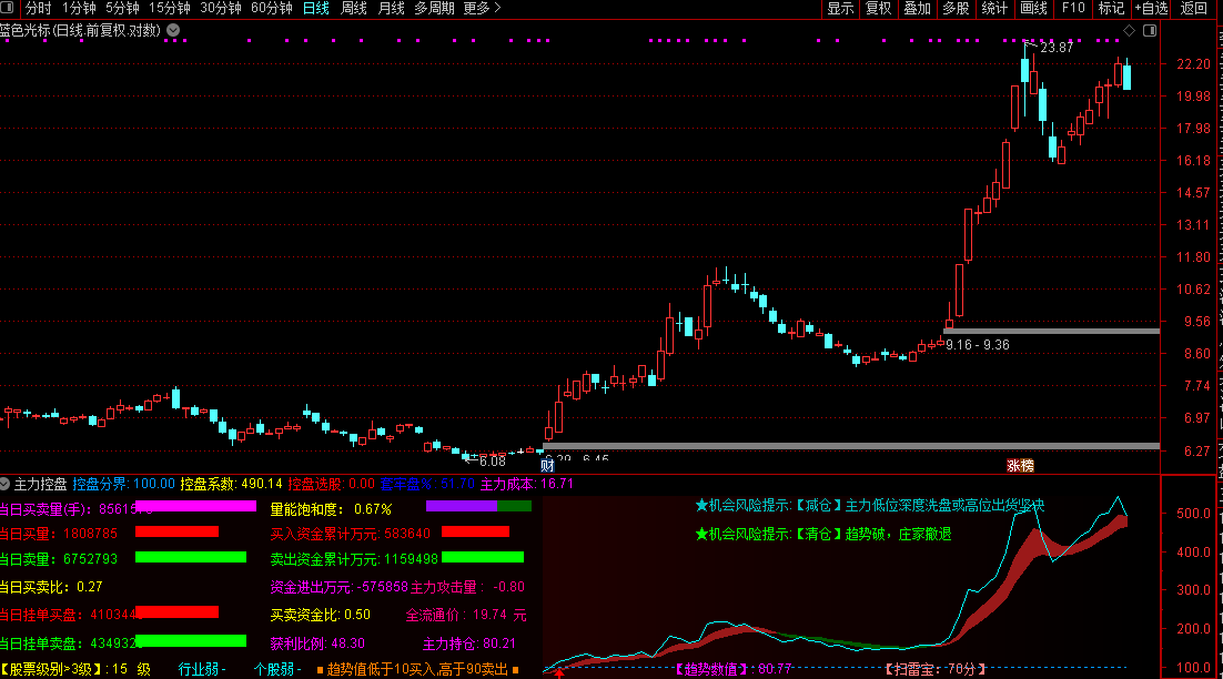 4. 辅助决策维度:右下角安全分≥80为高安全等级,<60需规避风险;趋势值低于10适合低吸,高于90宜止盈;个股/行业强于对应标的为共振信号,叠加控盘信号胜率更高。