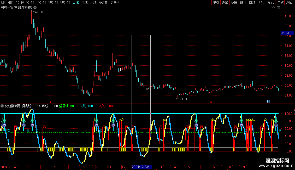 买入:IF(CROSS(HJ_7,HJ_8),60,0),COLORRED,LINETHICK2;