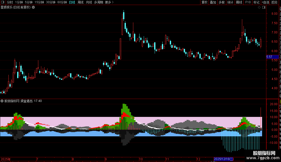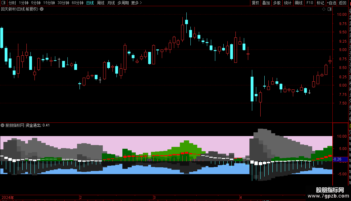 指标通过三组不同周期的MACD组合,分别捕捉短期、中期和长期的市场趋势变化,并以彩色柱状图直观显示强弱状态。同时引入大盘指数对比,结合价格高低区间估算资金流向,辅助判断主力资金进出方向。另外,通过快慢两条情绪线(红持与白减)的交叉关系,提示短线买卖时机:红线上穿白线为持股信号,下穿则为减仓信号。