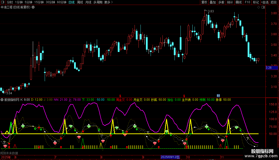 预测:IF(CROSS(NN,50),90,50),COLOR00FF00,LINETHICK3;