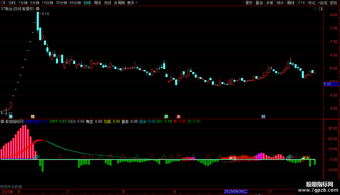 质:IF(LLV(DX,2)=LLV(DX,7) AND COUNT(DX<0,2)>0 AND CROSS(DX,MA(DX,2)),5,0),COLORRED;