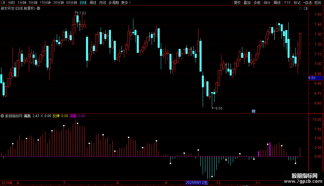 调整:IF(WR1<3 ,偏离,0),STICK,LINETHICK3;