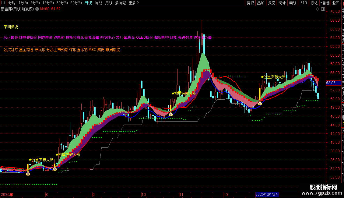 指标主要围绕价格趋势、主力行为和风险控制三方面构建操作参考。通过多周期均线系统识别底部区域与趋势方向,结合主力筹码动向判断资金介入强度;同时设置基于近期高点的多级止损线,辅助控制回撤风险。当价格放量突破关键阻力、主力筹码上穿趋势线且短期动能增强时,视为有效买入信号。