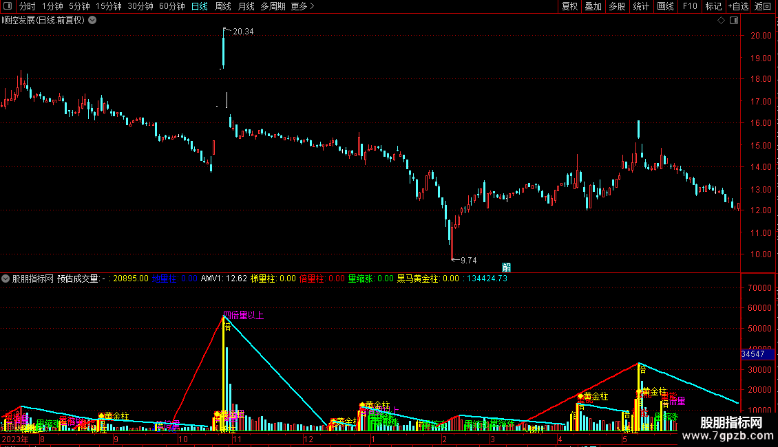 DRAWTEXT(梯量柱,VOL*0.1,'↖梯柱'),COLORYELLOW;