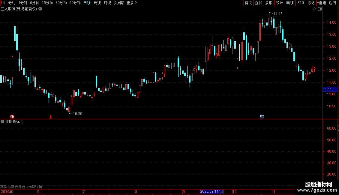 DRAWTEXT_FIX(CURRBARSCOUNT=1,0.03,1,0,'(X10万元)'),COLOR00FFFF;