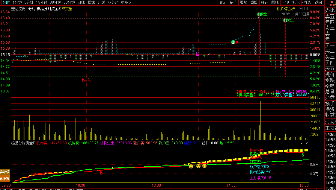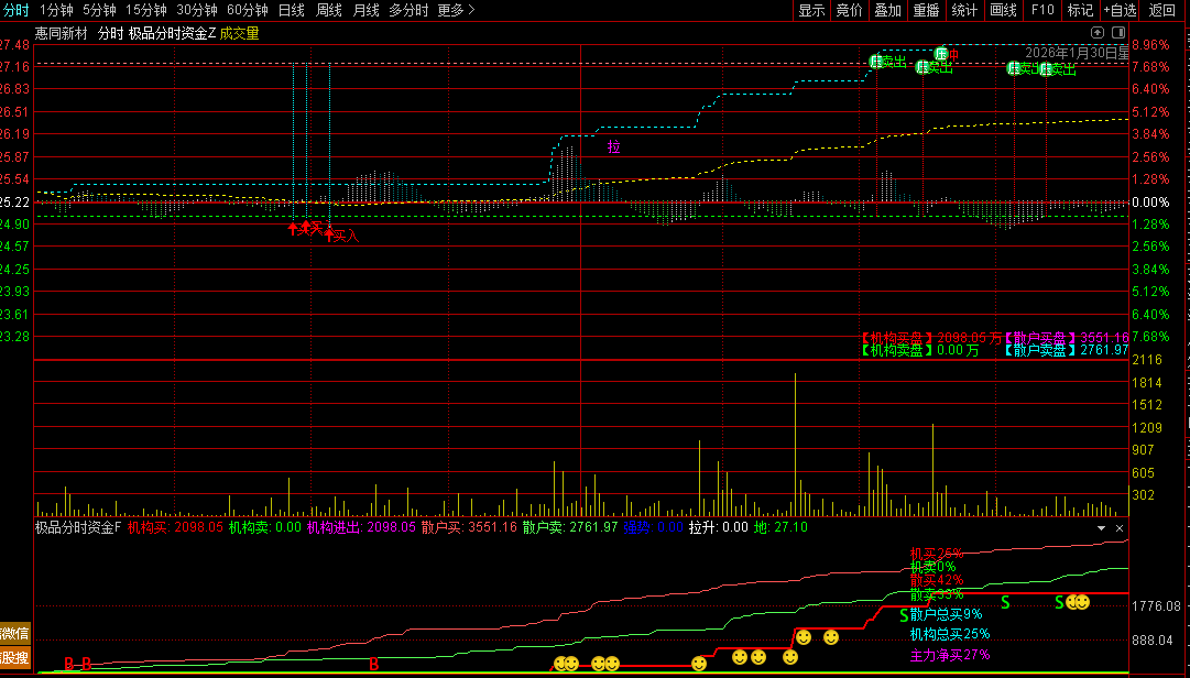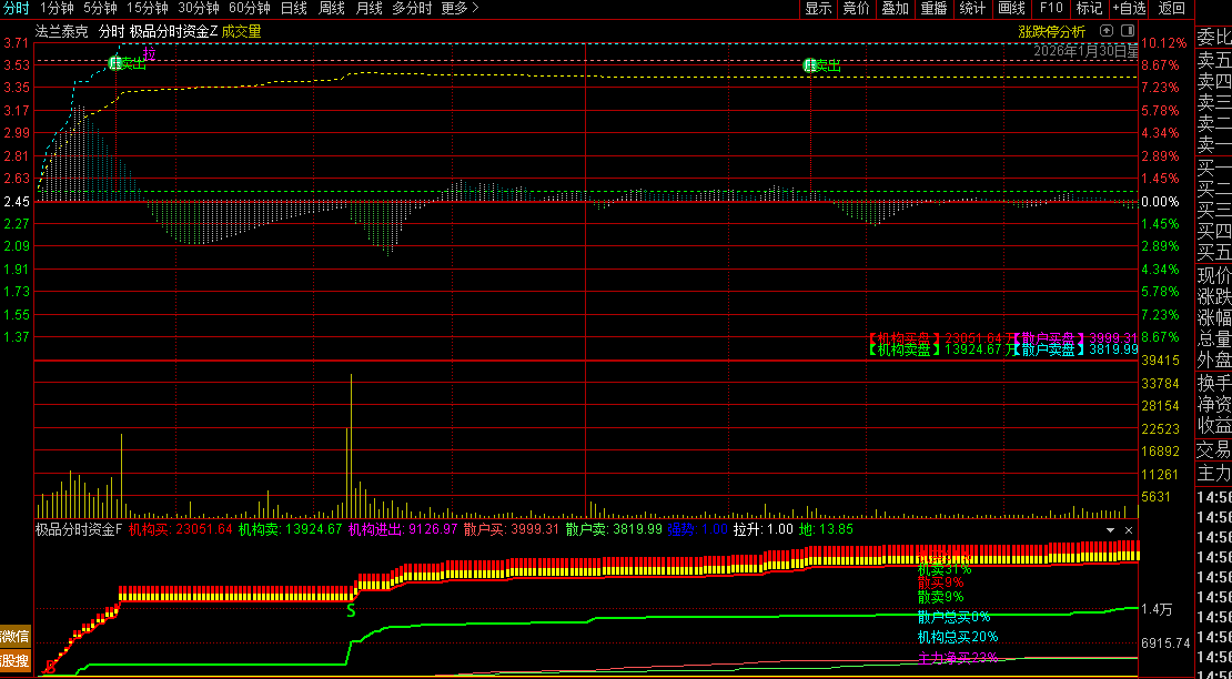 【极品分时资金监控王】主图/副图指标,让你跑步钱进,把握分时图做T买卖点!