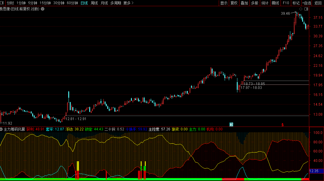 通达信『主力筹码风暴』筹码乾坤主力监控筹码博弈进行可视化定量化源码