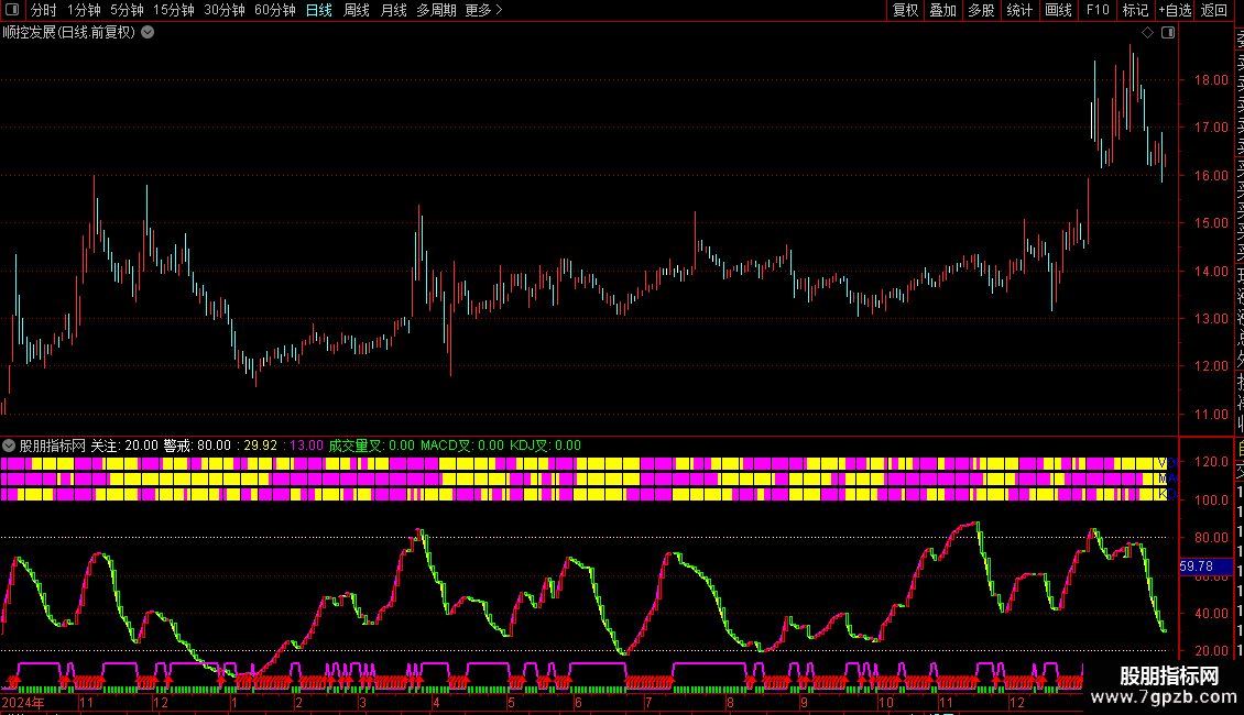 IF(波段>=REF(波段,1),0,13),COLORFF00FF,LINETHICK2;