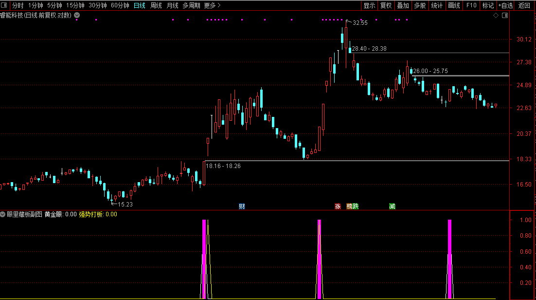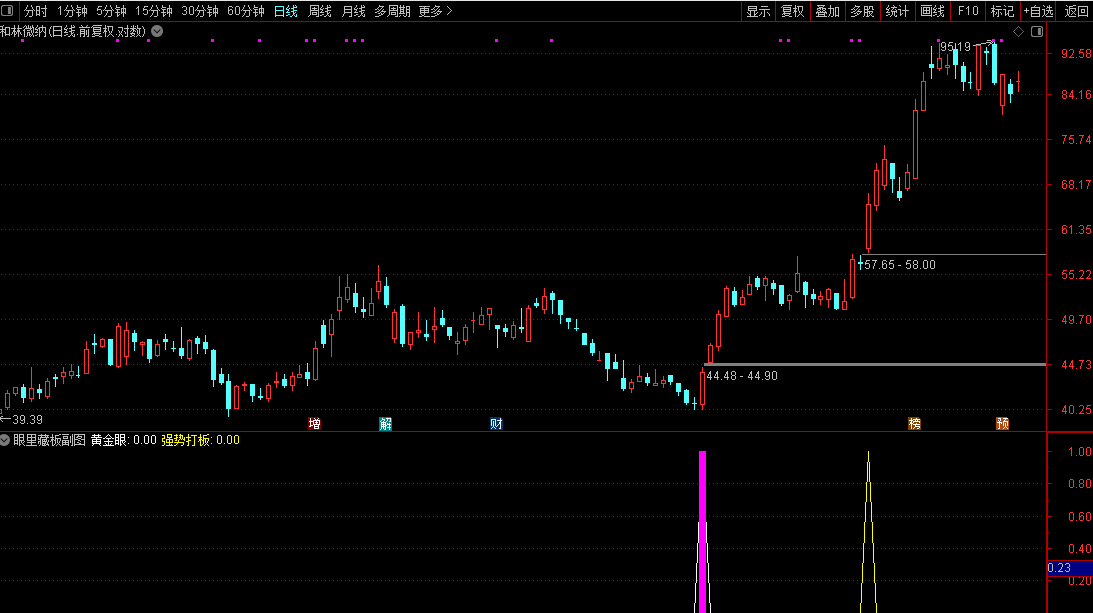 1. 副图公式:直接导入通达信副图,粉色柱为「黄金眼」信号、黄色标注为「强势打板」信号,可直观查看个股信号出现位置与量价、均线配合情况;
