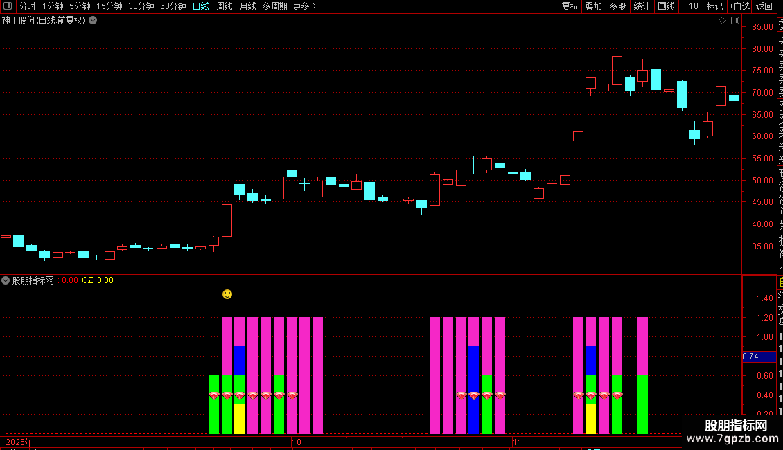主力:=EMA((GU3-GU4)/(GU5-GU4)*100,13)*GU2;