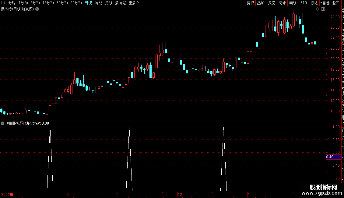 VAR16:=CLOSE/REF(VAR1,1)>1.030 AND VOL>REF(VOL,1) AND WINNER(CLOSE)>0.80 AND VAR2>0;