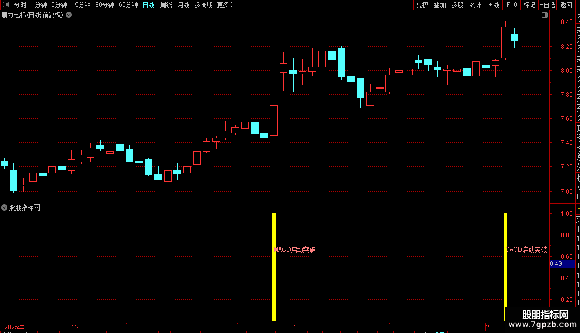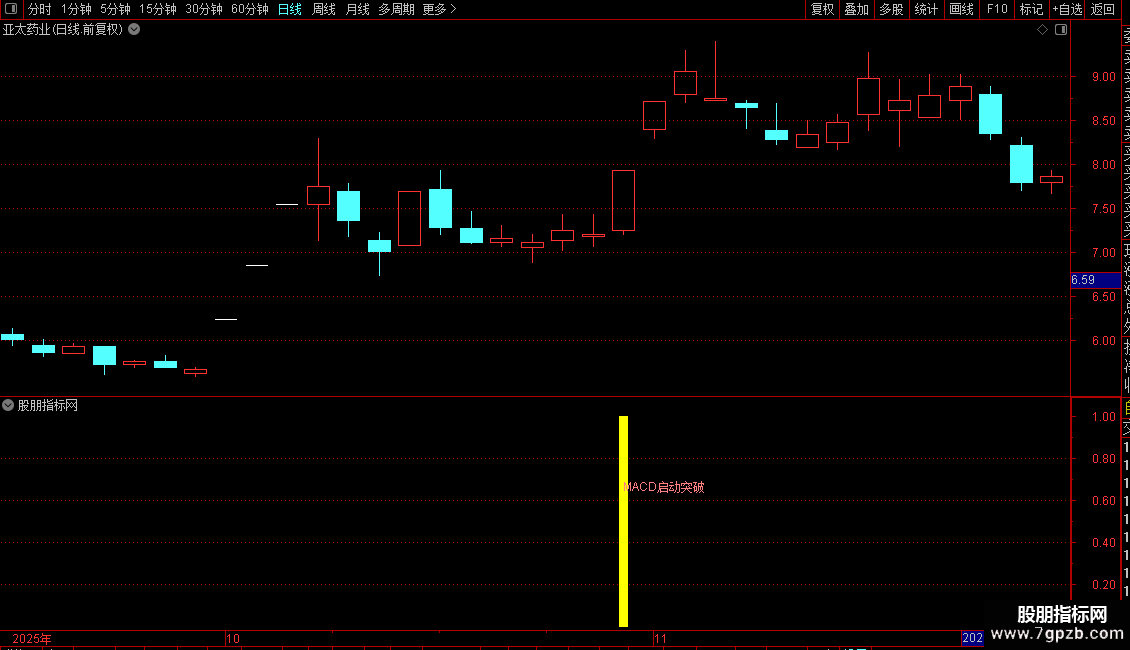 STICKLINE(MACD启动突破,0,1,1,0),COLORYELLOW;