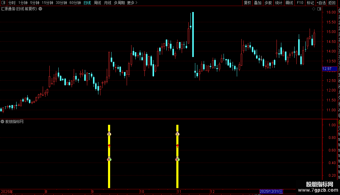 指标主要用于识别强势股的启动信号,结合价格位置、筹码分布与主力行为判断潜在“妖股”突破机会。通过对比高低点区间、短期均线趋势及成交量活跃度,筛选出处于拉升初期、主力控盘且散户抛压减弱的个股。当主力筹码占优、拉升动能增强,并满足特定突破条件时,系统发出买入提示。