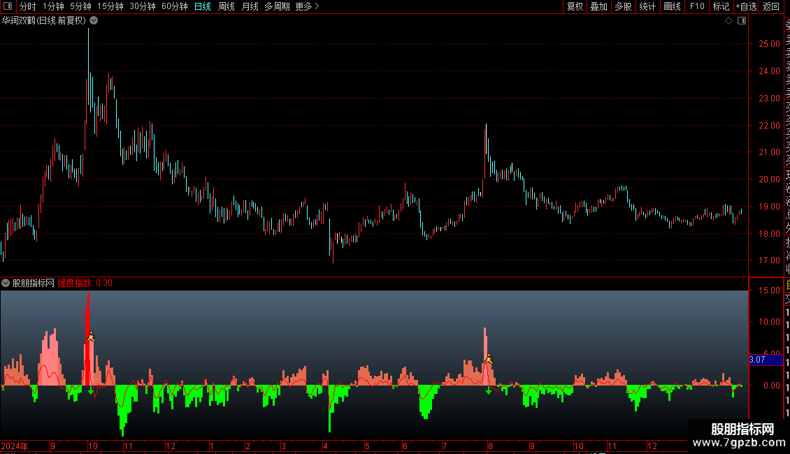 DRAWICON((REF(强度指数,1)-强度指数)>=1.5 AND 强度指数>0,0,2);