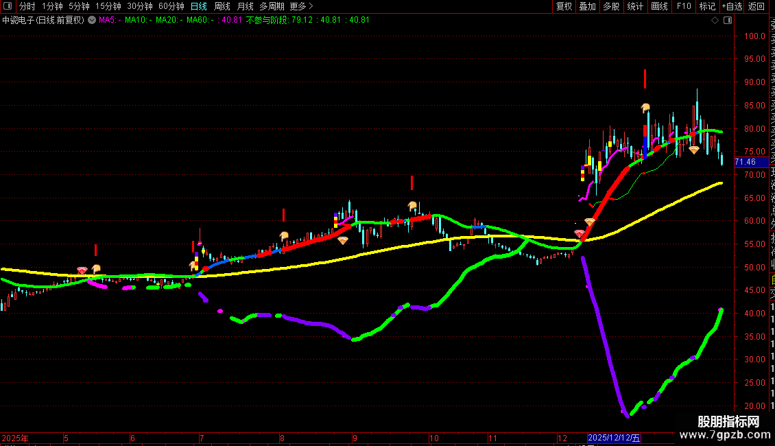 DRAWTEXT(ZBGS360 AND 牛熊分道>REF(牛熊分道,5),LOW,71),COLORYELLOW;