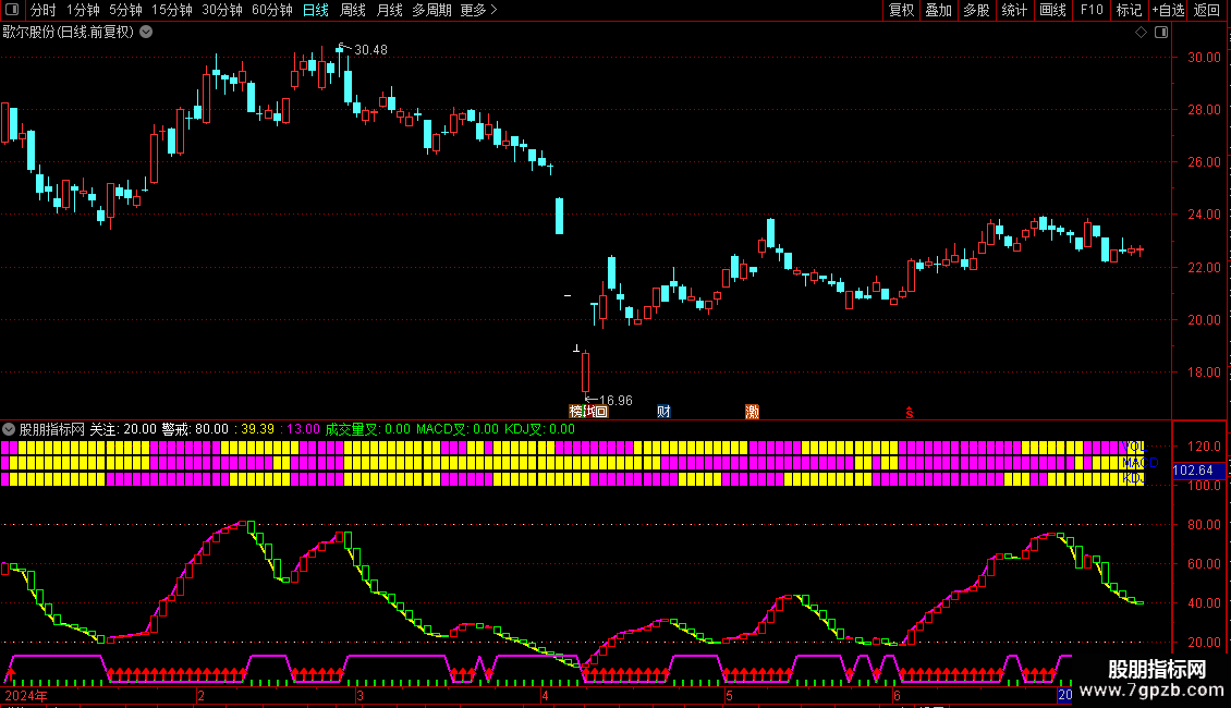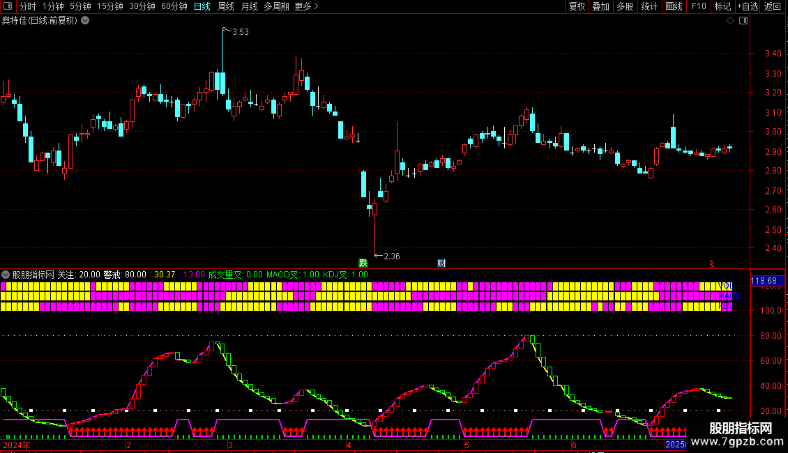 DRAWTEXT(CURRBARSCOUNT=3,103,'KDJ'),COLORFF0000;