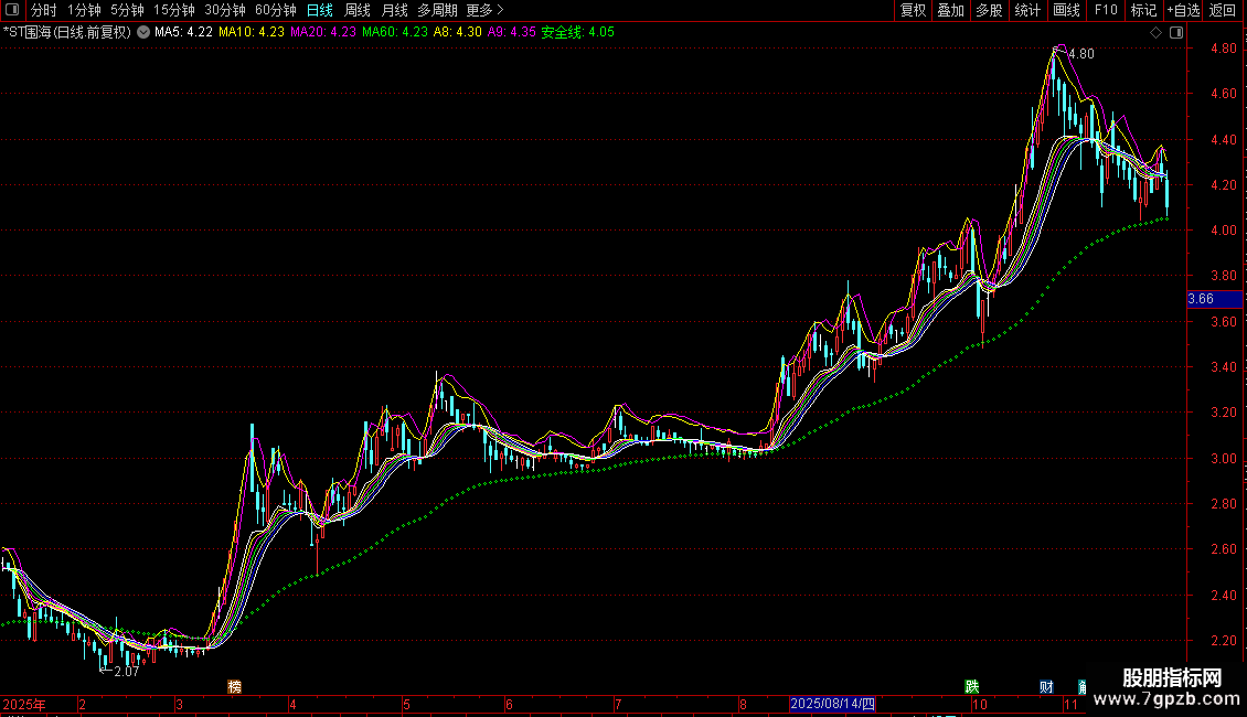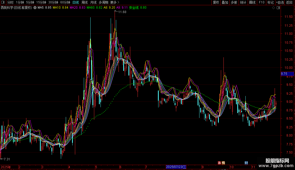 安全线: EMA(CLOSE,55), CIRCLEDOT;