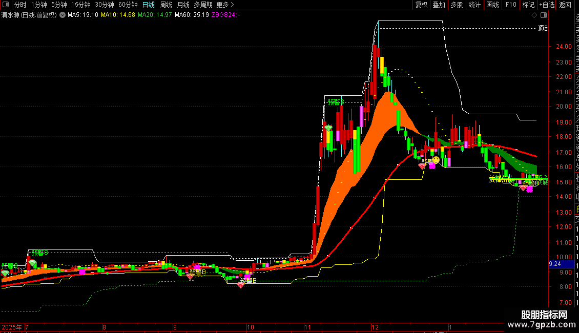 DRAWTEXT(CURRBARSCOUNT=15,ZBGS10*1,'支撑价位'),COLORYELLOW;