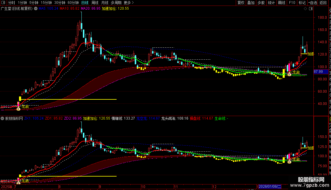 3. 红色操盘线上穿绿色生命线确认多头,加速加仓线提示趋势强化。该指标适用于短线追涨龙头股,需结合K线站上通道与资金流入验证信号有效性。