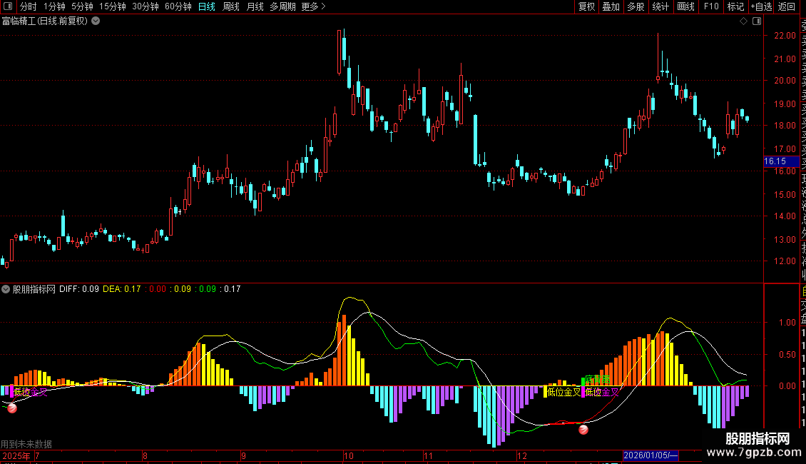 2、变异MACD指标具备多种提示功能,包括低位金叉提示、低位二次金叉提示、顶背离提示以及底背离提示等。这些信号的出现与使用方法与传统MACD相同,但不同之处在于,一旦信号产生,投资者无需额外观察与研判,即可直接依据信号获取操作提示,提升效率。