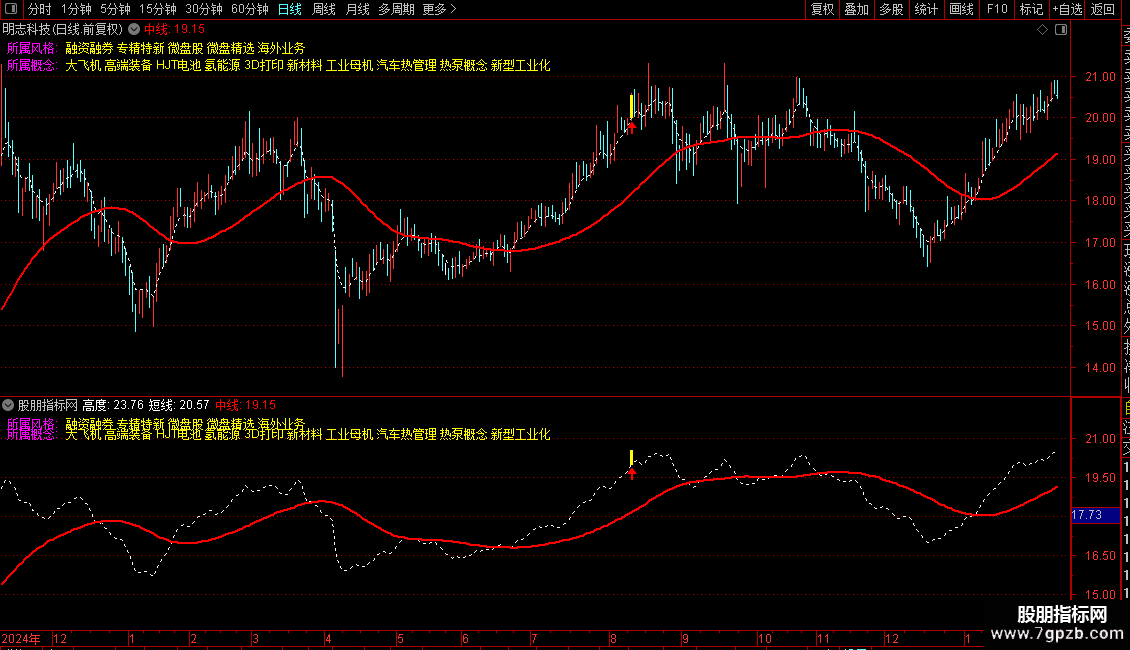 御龙指路:=BARSLASTCOUNT(高度>0 AND 高度>=50)=1 AND MACD.MACD>0 AND ZC AND 去昨天;