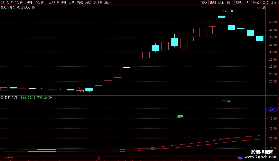 NOTEXT_A2:IF(C>上轨,A1,DRAWNULL),COLORRED;