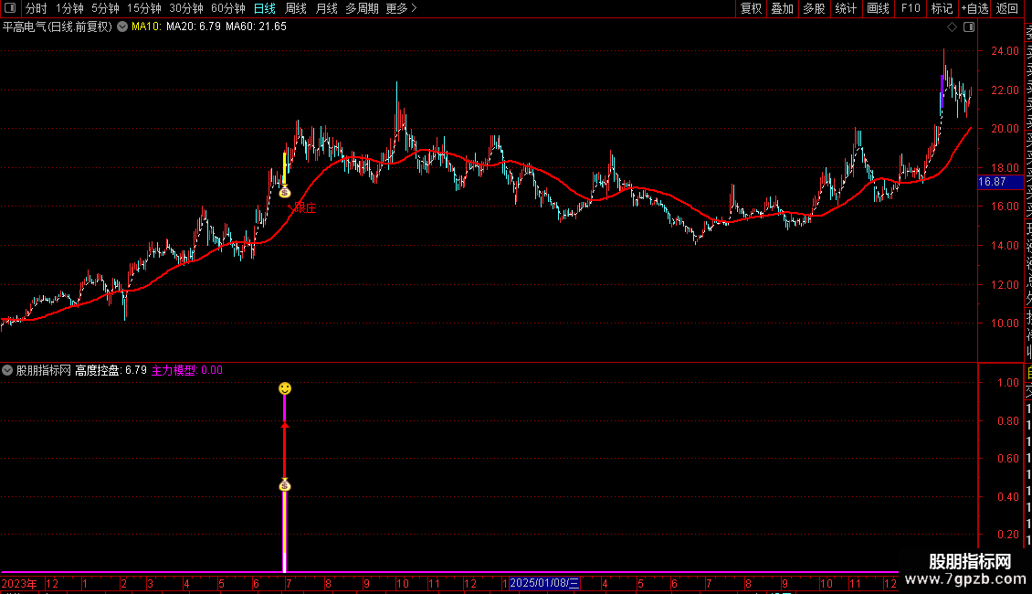 2. **副图公式**:搭配主图使用,出现红黄绿三色柱+多个图标时,为主力模型确认信号,与主图跟庄信号共振时可信度更高。
