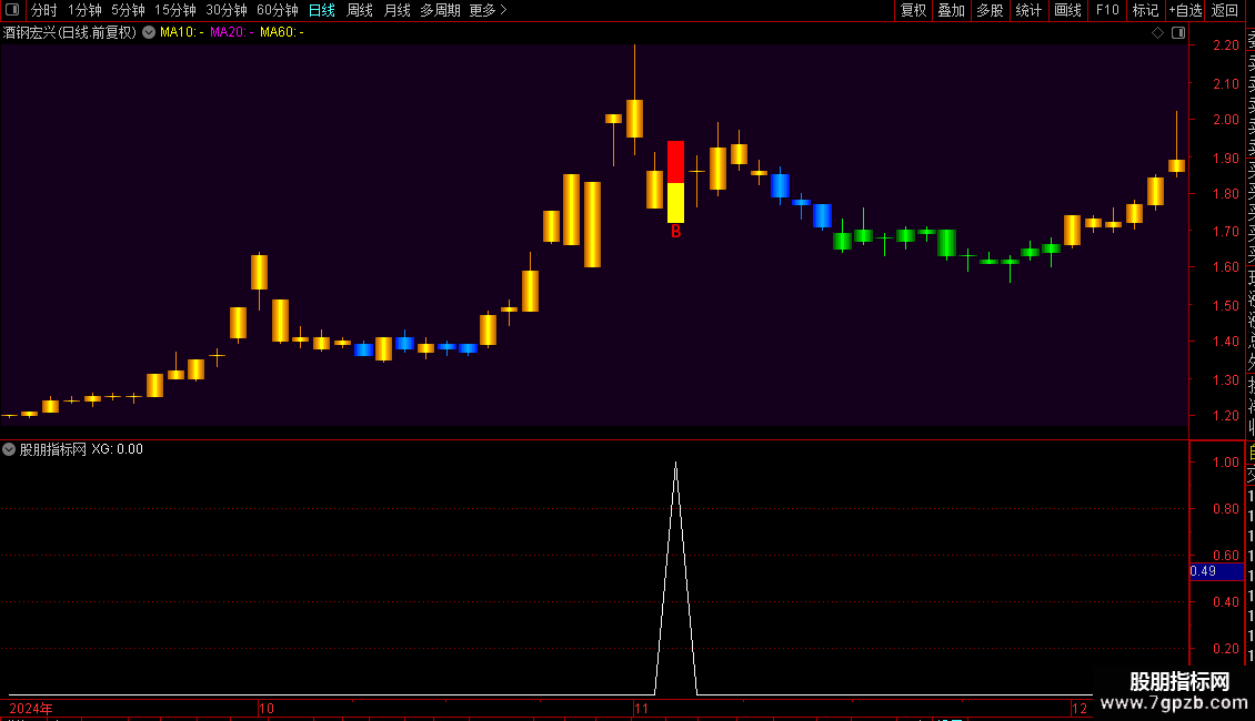 三、智能选股信号体系:红黄双色K线为明确买入信号,经严格回测验证: