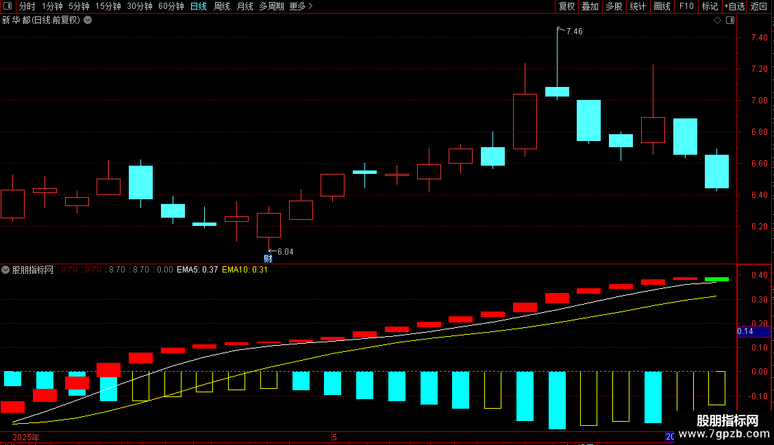该指标在副图显示,主要观察MACD柱状图的颜色变化、零轴穿越以及“均线发散/粘合”区域。