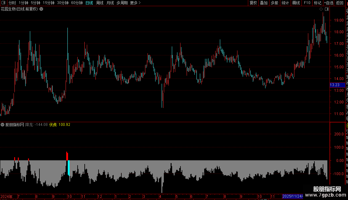 1. **红柱**:降龙>0,股价处于强势上升阶段,可顺势持有;