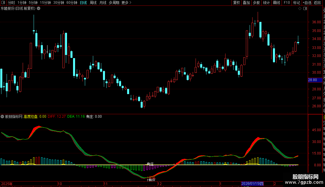 3. DRAWBAND:在“财线”和“神线”之间填充色带,直观显示其金叉死叉区域。