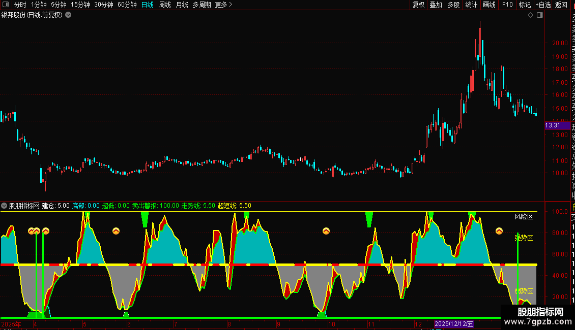 85-100:风险区。对应“卖出警报”信号区域。