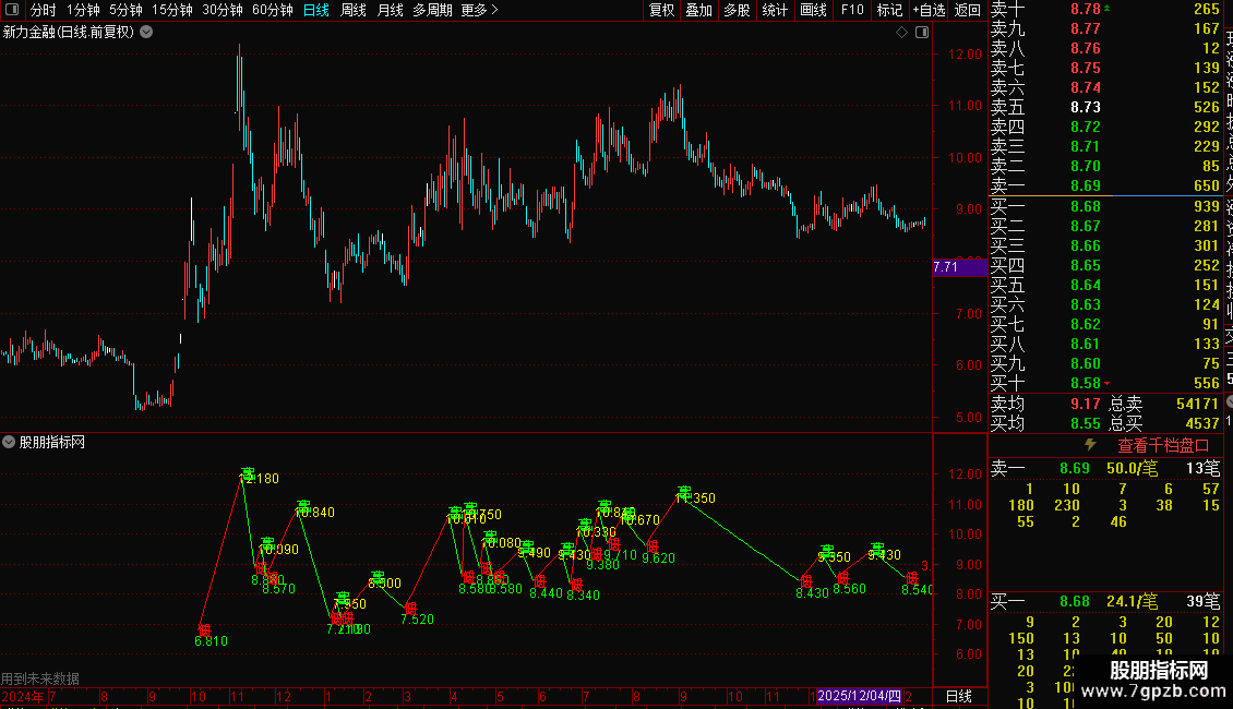 指标用于识别价格走势中的阶段性高点和低点,并标注买卖信号及涨跌幅统计。