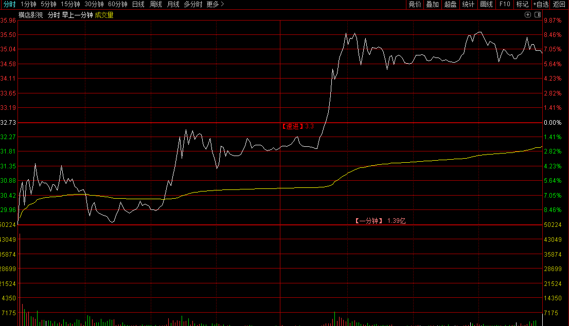 通达信『早上一分钟』分时主图集合竞价后早盘开盘第一分钟金额源码