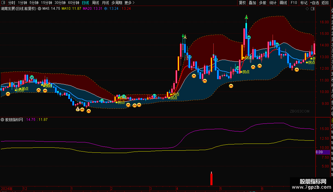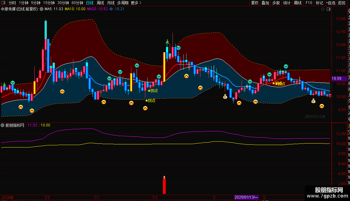 2. 副图:出现红粉柱+黄色“拐点确认”,代表首板条件达标,可重点关注。