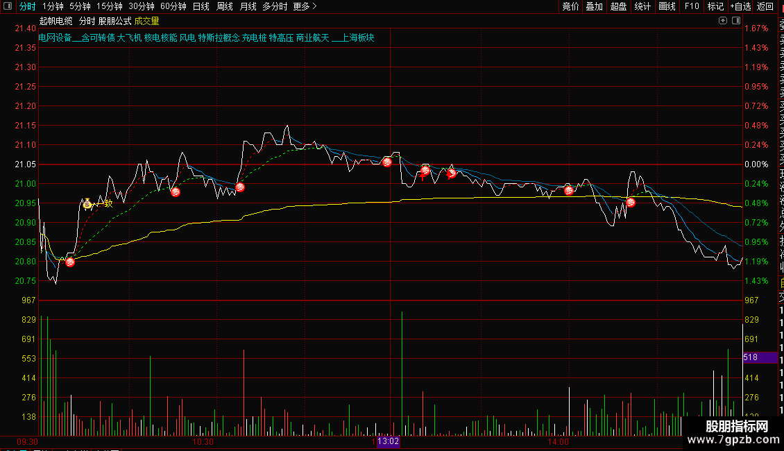 3. 辅助参考:左上角显示所属行业/概念板块,右下角“主力值”蓝色代表资金小幅流入,红色代表大幅流入,可辅助判断资金强度。