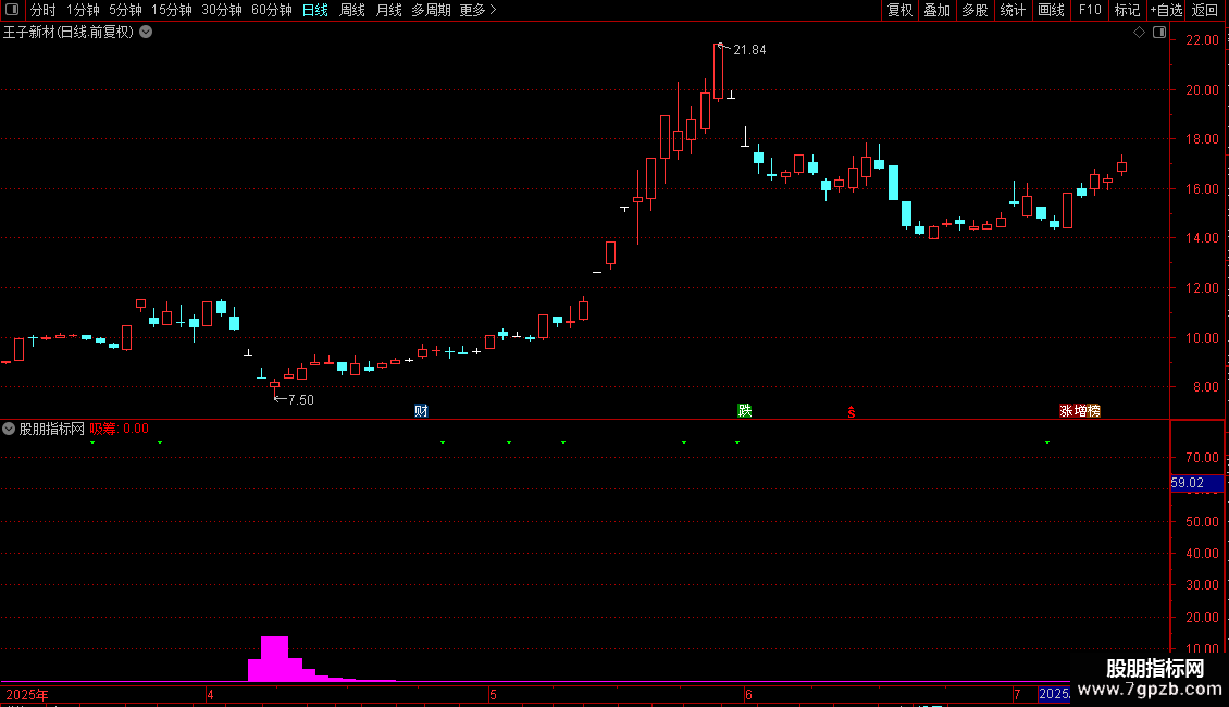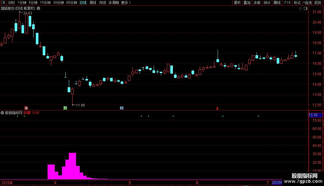 “主力跟踪”柱状图(洋红色):是“吸筹”线的柱状表现形式,更直观地显示吸筹力度的变化。柱体出现并升高,表示主力吸筹行为活跃。