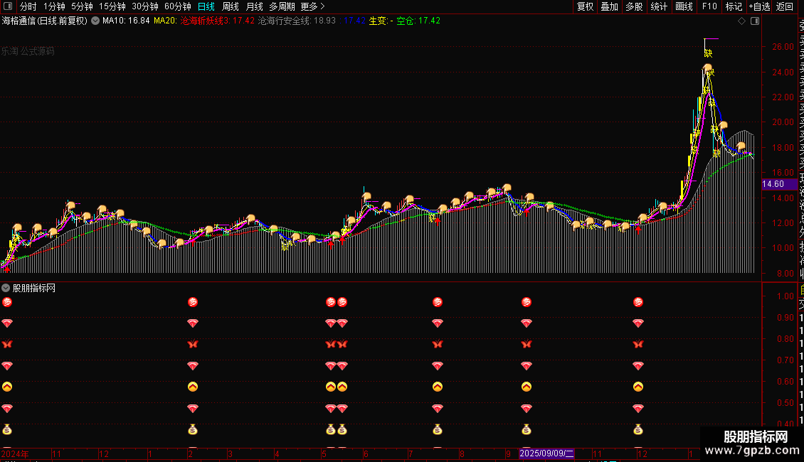 沧海行安全线:MA(CLOSE,25),COLORGRAY,LINESTICK,LINETHICK1;