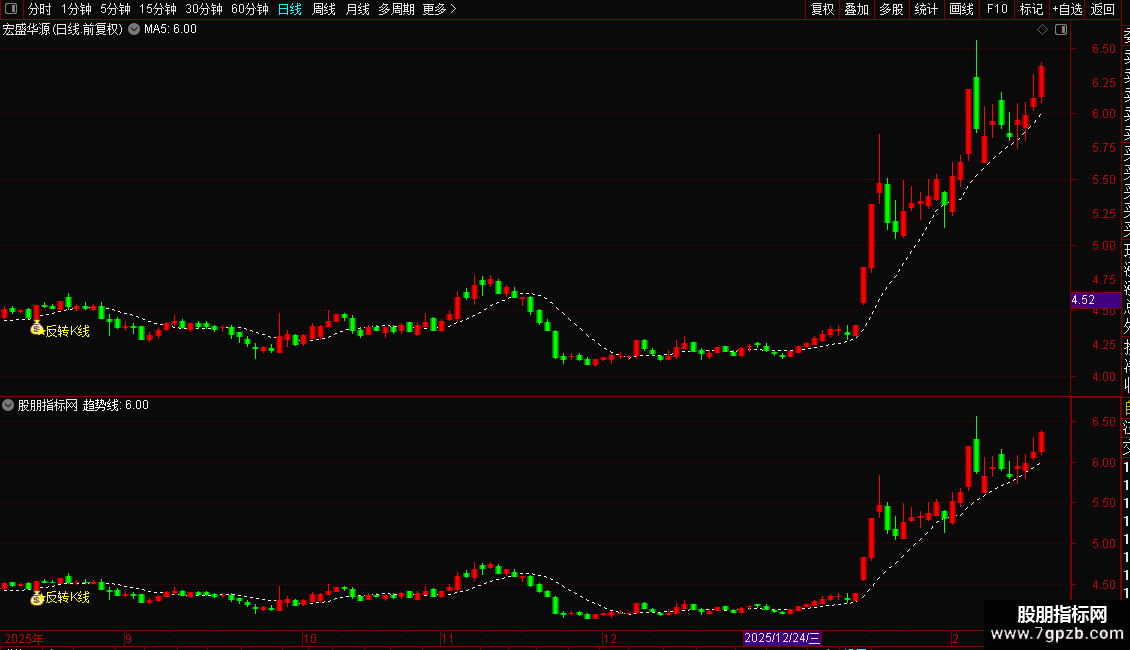 DRAWTEXT(条件,L*0.98,'★反转K线'),COLORYELLOW;