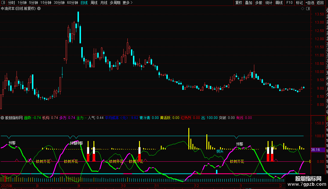 DRAWTEXT(CROSS(机构,趋势),0,'-----铁树开花'),COLORYELLOW;