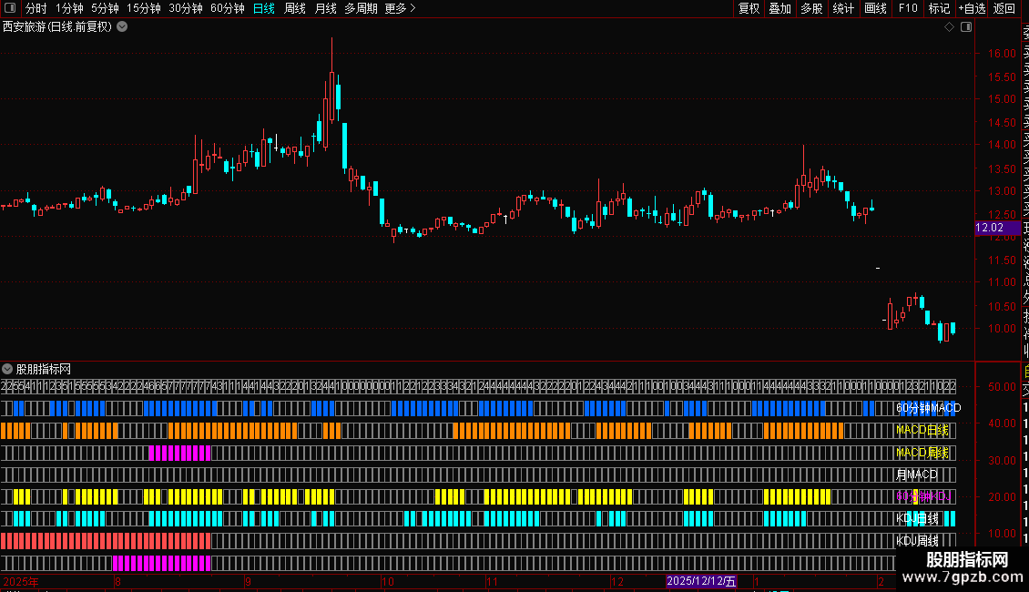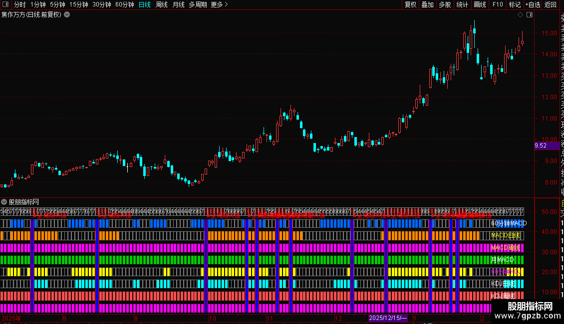 DRAWTEXT(CURRBARSCOUNT=10,8,'KDJ周线'),COLORWHITE;