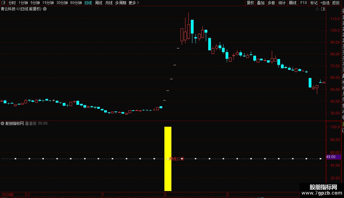 通达信副图指标,专为强势股短线接力打造,紧扣经典二龙两板战法逻辑,信号直观清晰。指标在符合强势两板结构的关键位置,自动发出黄色信号柱提示,精准捕捉个股启动节点,助力识别强势股二次发力机会。指标不预测、不承诺收益,仅作为技术参考工具,适配短线强势股跟踪,信号简洁易懂,电脑与手机端均可正常使用,方便快速盯盘、辅助判断个股接力机会。