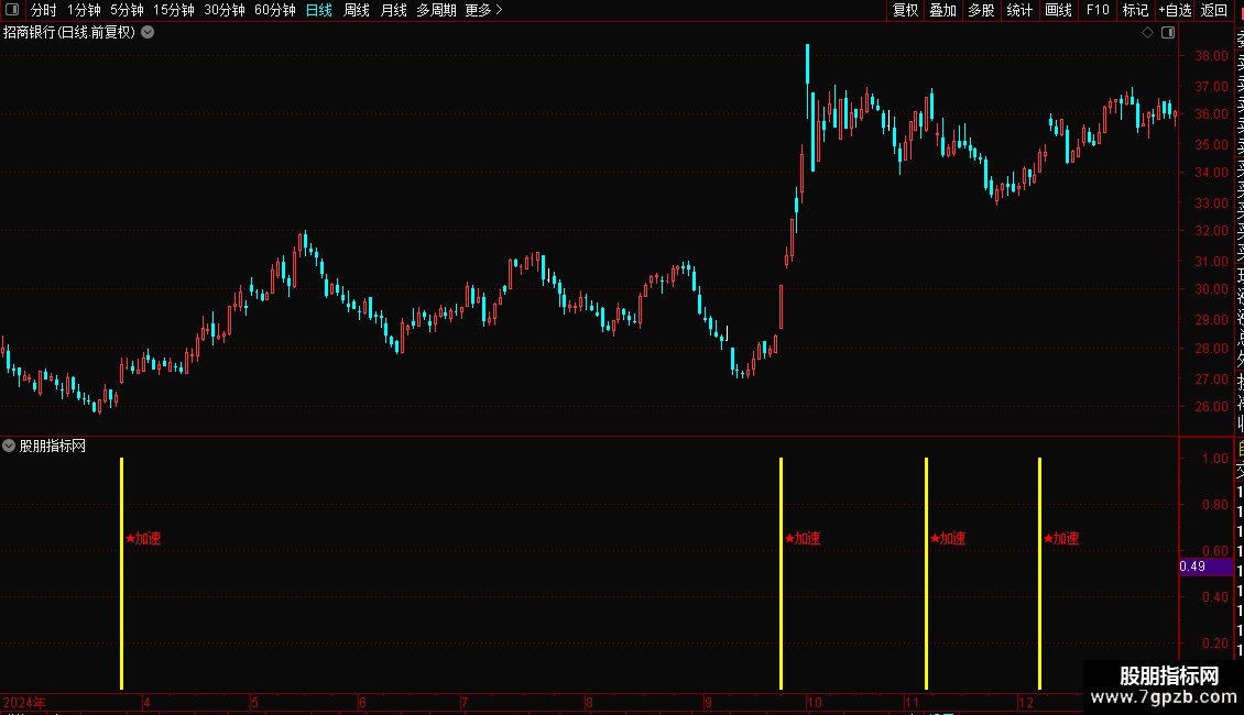 当指标在K线图上出现洋红色的柱状线并伴有“★加速”的文字提示时,表明股价已进入强势拉升区,是激进型投资者的介入良机。建议结合当时的市场热点与成交量变化进行确认,若出现信号时伴随成交量显著放大,则信号可靠性更高。稳健型投资者可等待股价回踩关键均线支撑位不破后再行加仓。止损位可设置在信号出现当日的最低价或关键均线之下。