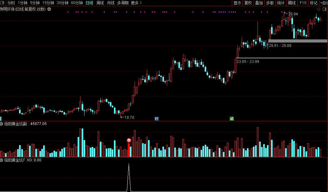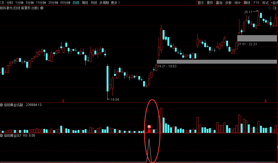 通达信『倍阳黄金坑』副图/选股针对底部出现首次倍量阳线量化源码