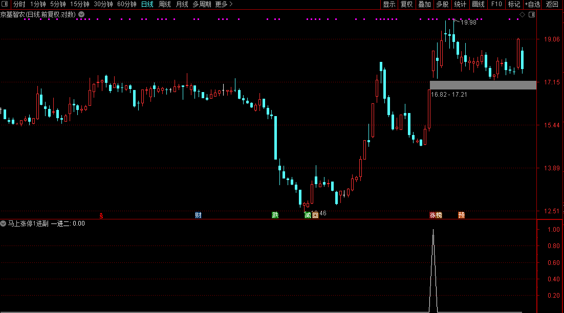 当公式发出“一进二”信号时,表示该个股在首板后,量价关系与技术指标等方面已达到晋级二板的核心条件。此时可结合盘面走势、板块热度等因素,进一步分析合适的介入时机。