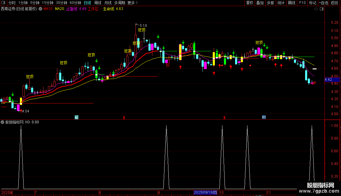 IF(CROSS(工作线,生命线),工作线*0.975,DRAWNULL),CIRCLEDOT,COLORRED;