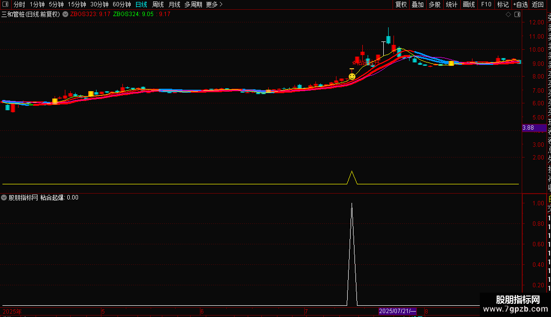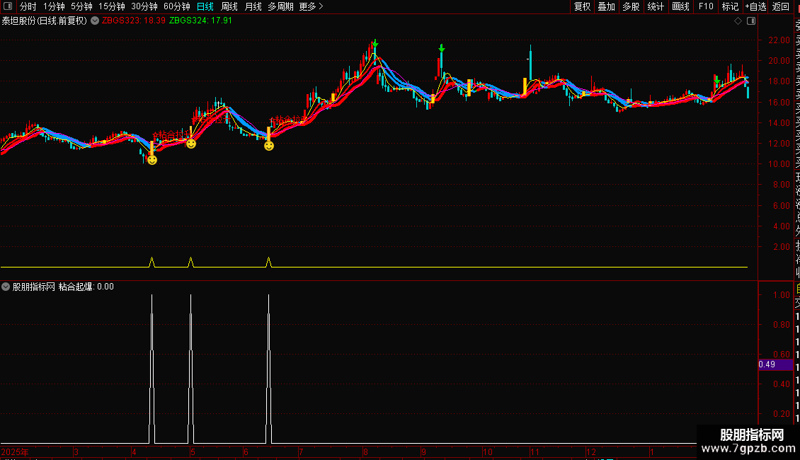 本指标专为通达信软件设计,通过分析中期价格波动与短期主力资金数据,结合成交量与股价关系,判断股价近期走势强弱,并提示笑脸与均线粘合起爆信号,辅助把握进场时机。
