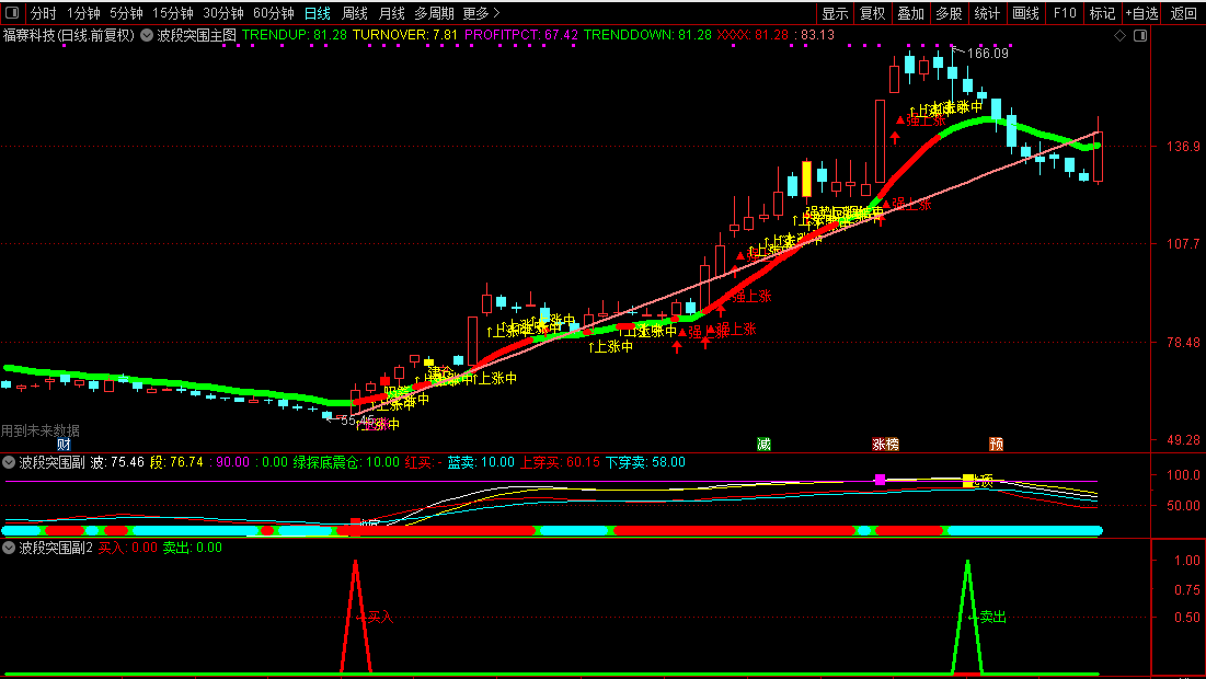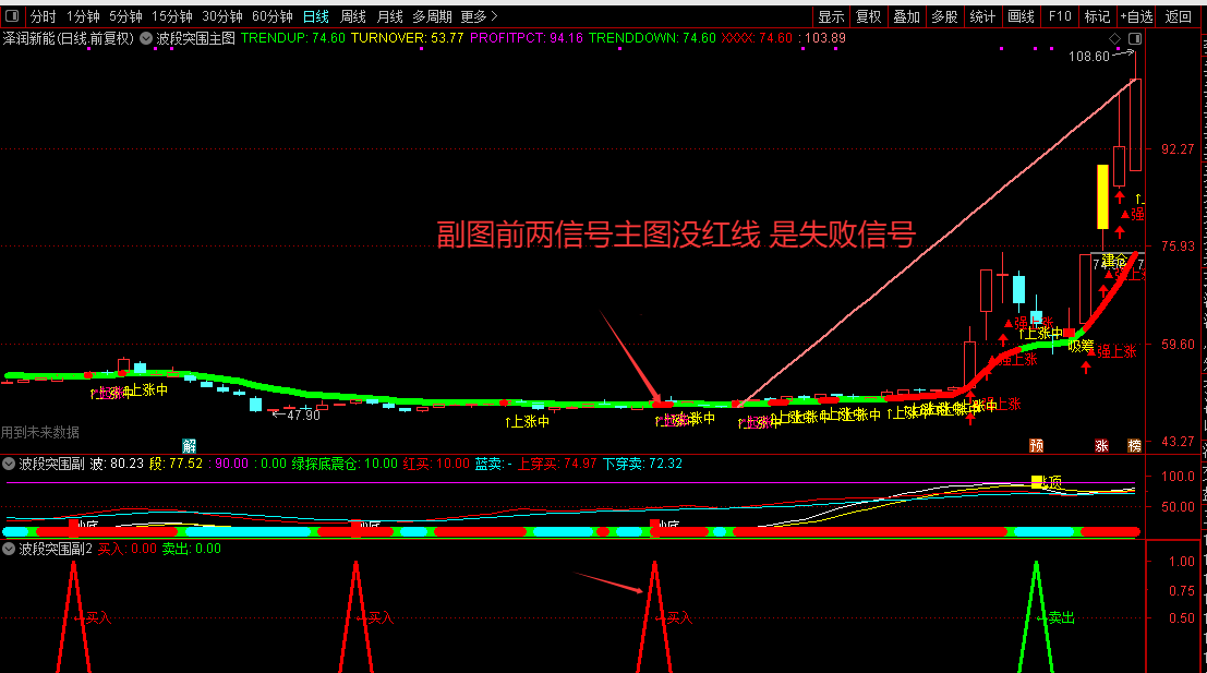 指标的核心是两条线:白色的“波”线和黄色的“段”线。你可以把它们理解为股价短期和中期强弱的代表。