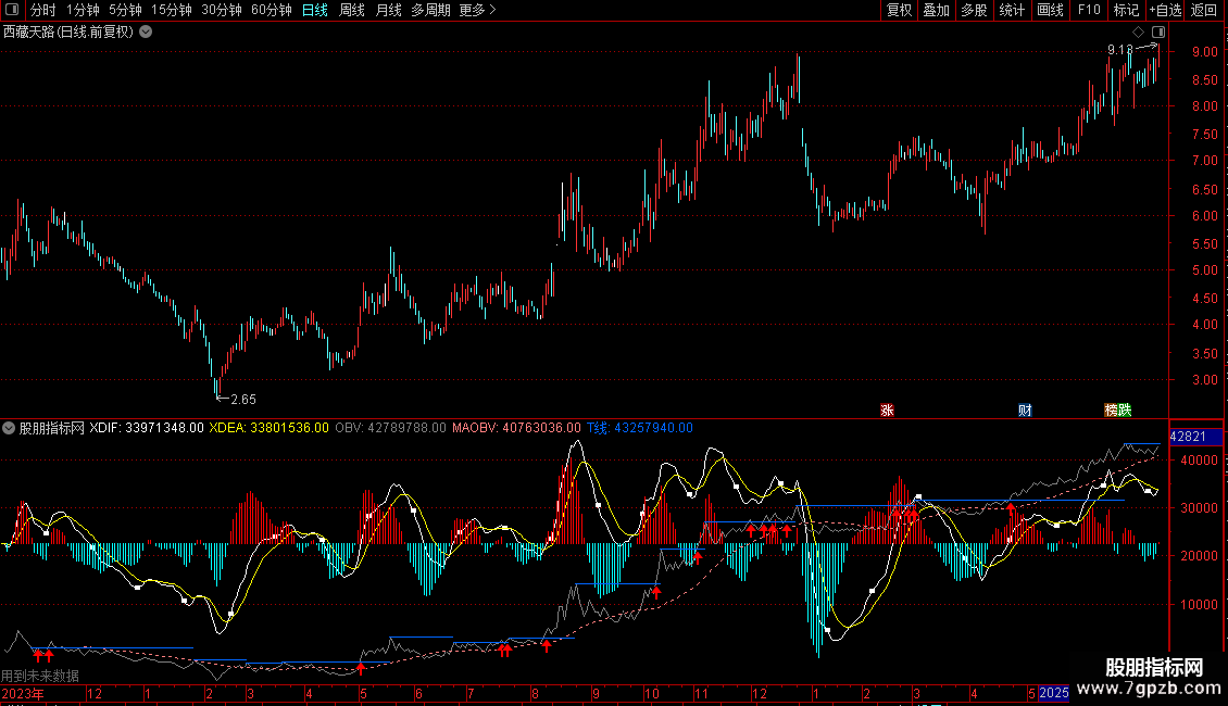 这个成交量指标也是从网上找到的,经过本人多年使用,并DIY优化后,添加了百日地量(群)显示,一般百日地量群出来后,未来股价有回升的需求