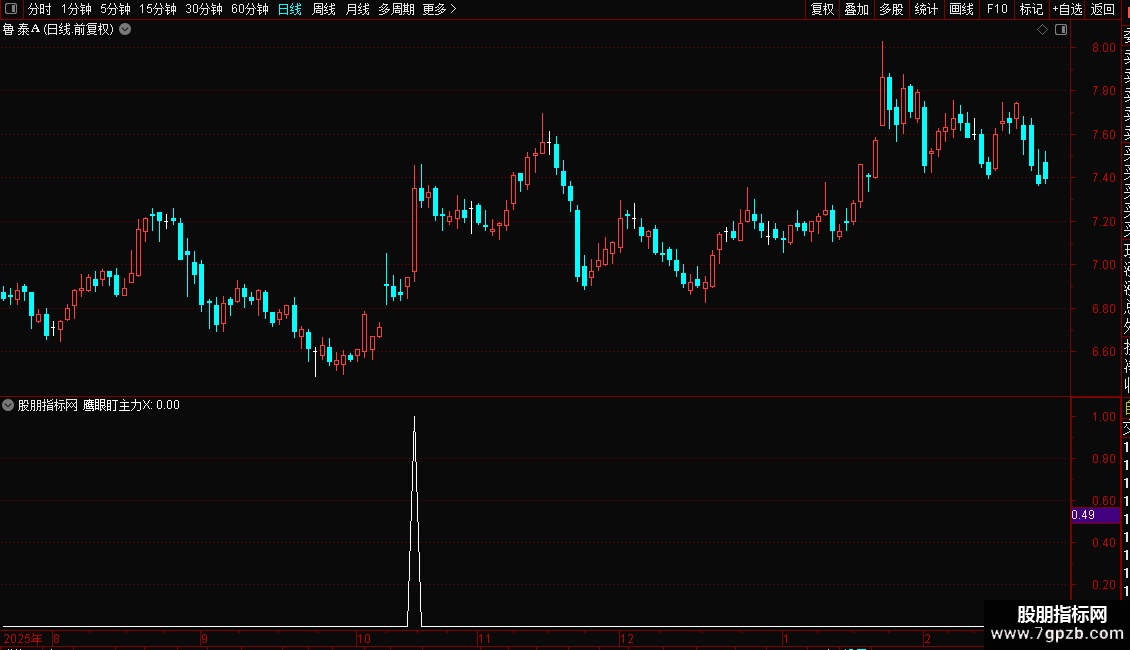 鹰眼盯主力X:AA1 AND AA2 AND AA3 AND NOWPAY>=JIAOH AND TOPAY>=0 AND (SANPAY-NOWPAY)<9.5 AND XGG1;